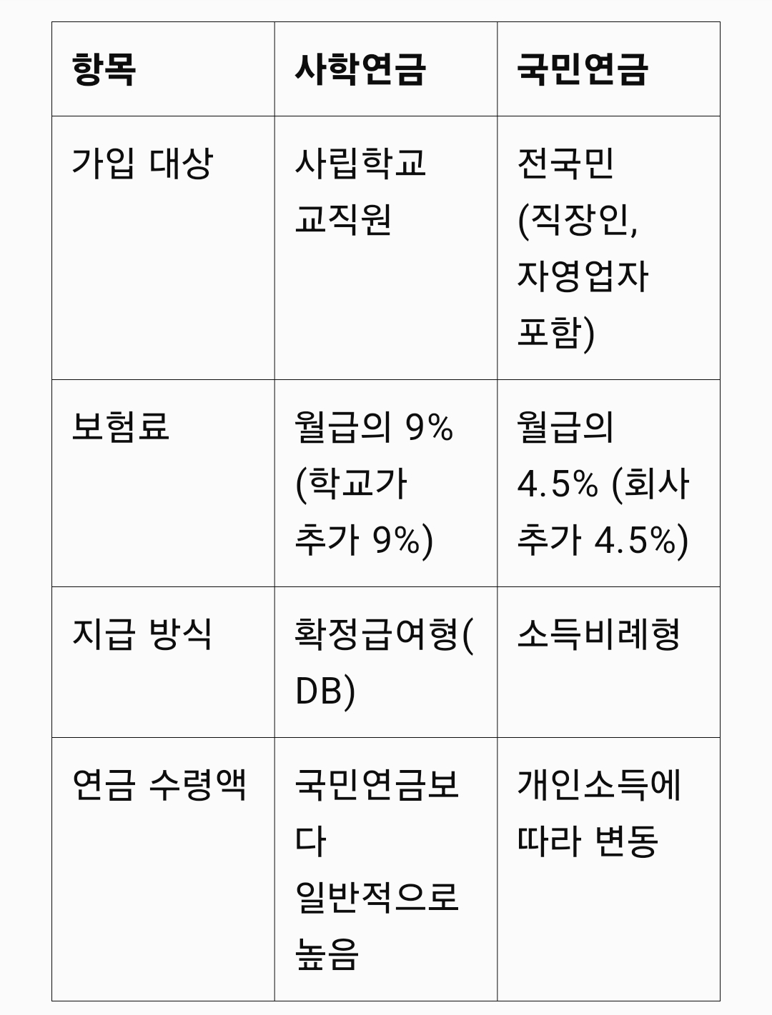 ✅ 사학연금 vs 국민연금 차이점